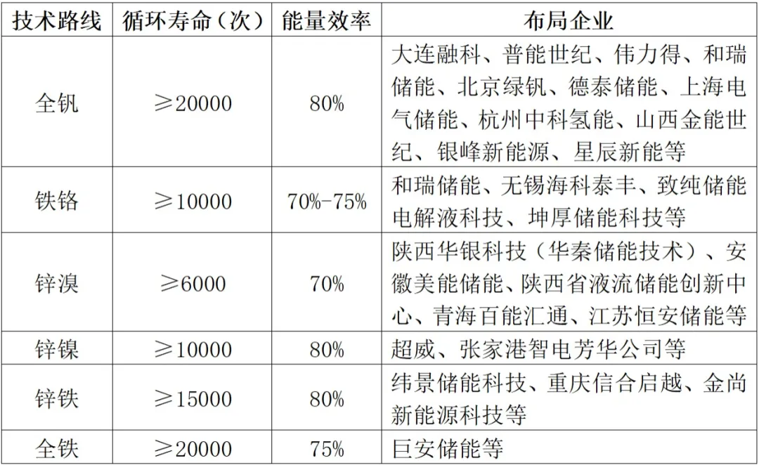 表1 液流電池不同技術(shù)路線(xiàn)及布局企業(yè)