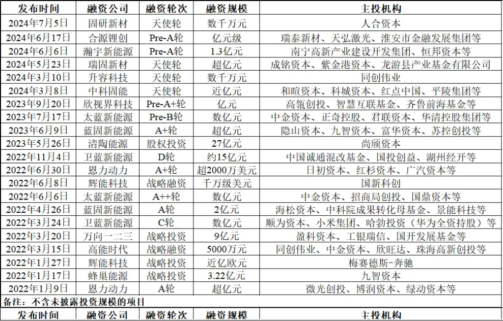 表1 2022-2024年中國固態(tài)電池行業(yè)部分投融資事件