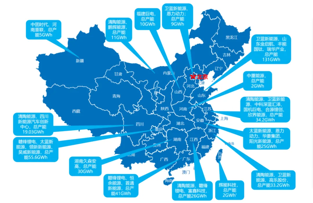 圖3 中國(半)固態(tài)電池產(chǎn)能(含規(guī)劃)分布圖
