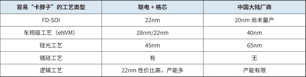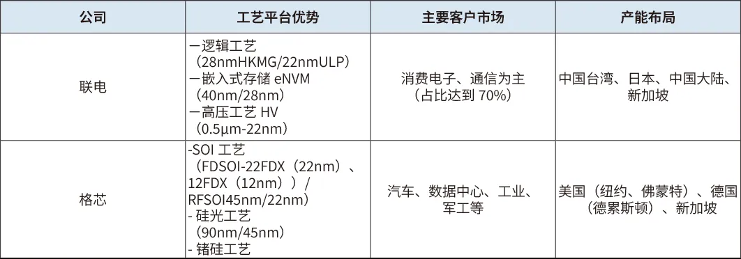 表2 聯(lián)電、格芯的工藝平臺(tái)優(yōu)勢(shì)