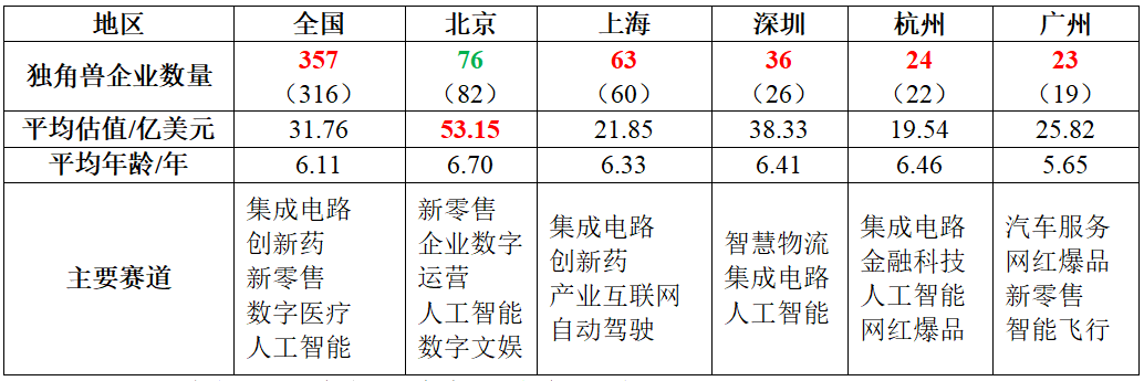 表3 2022年北京與國內(nèi)其他主要城市獨角獸企業(yè)指標對比